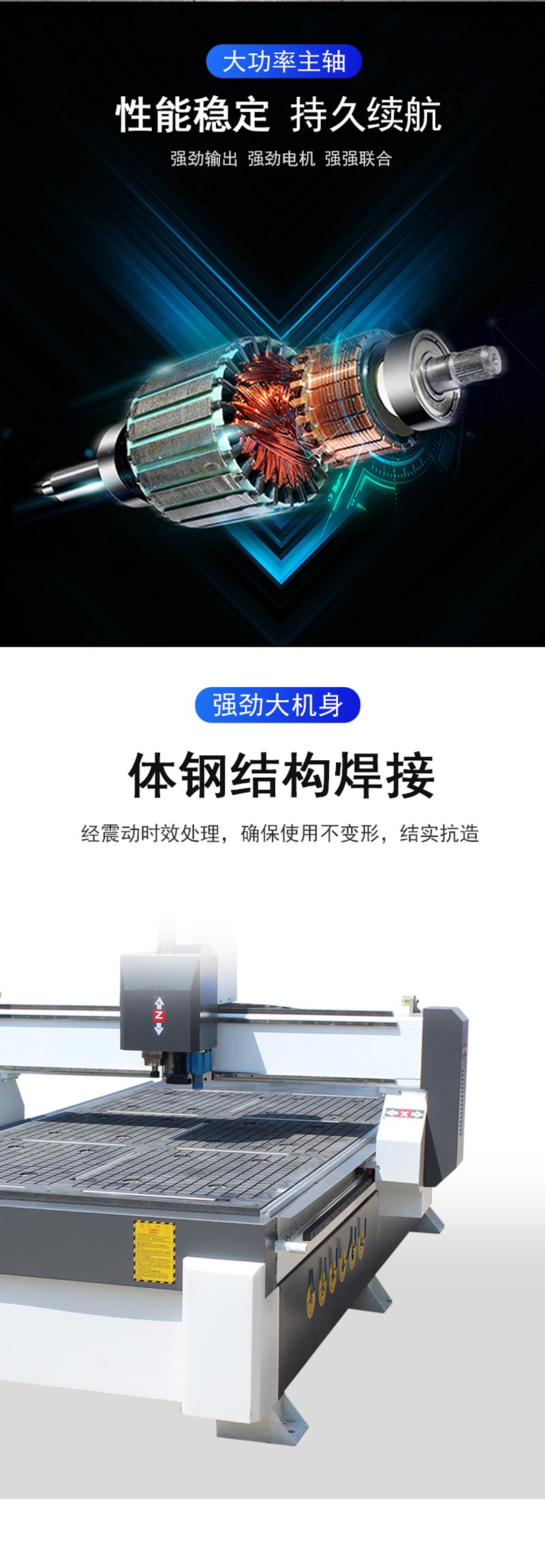 ◆ 機身采用厚壁鋼管焊接而成,經高溫回火處理,確保機身變形小,剛性好,強度大。